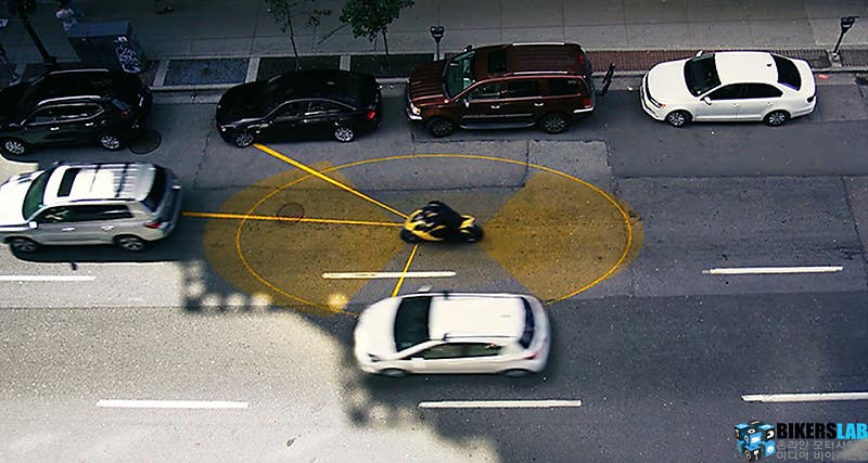 차체 주변 360도에 20개의 센서는 최대 64개 물체의 속도, 방향 등을 동시에 계산하며 사고가 발생할 것을 예측한다. 위협을 포착하면 비상등과 함께 특허받은 핸들바 진동으로 라이더에게 위험을 알린다. 이 시스템은 다양한 도로 환경에 대응할 수 있도록 개발했으며 안전하고 스마트한 모터사이클 라이딩을 실현했다.