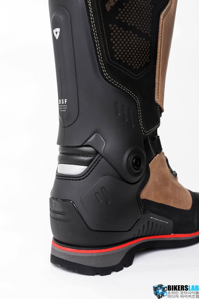 이렇게 탄생한 익스페디션 H2O 부츠는 다양한 시스템을 적용해 어드벤처 라이딩에 최적화된 구성을 갖췄다. DSF(Dynamic Support Frame), 보아(BOA) 피팅 시스템, 비브람(VIBRAM) 솔 등의 기술을 탑재했고, 누벅가죽, 메모리 폼, 하이드라텍스 멤브레인을 사용하는 등 철저히 기능성에 초점을 맞췄다.