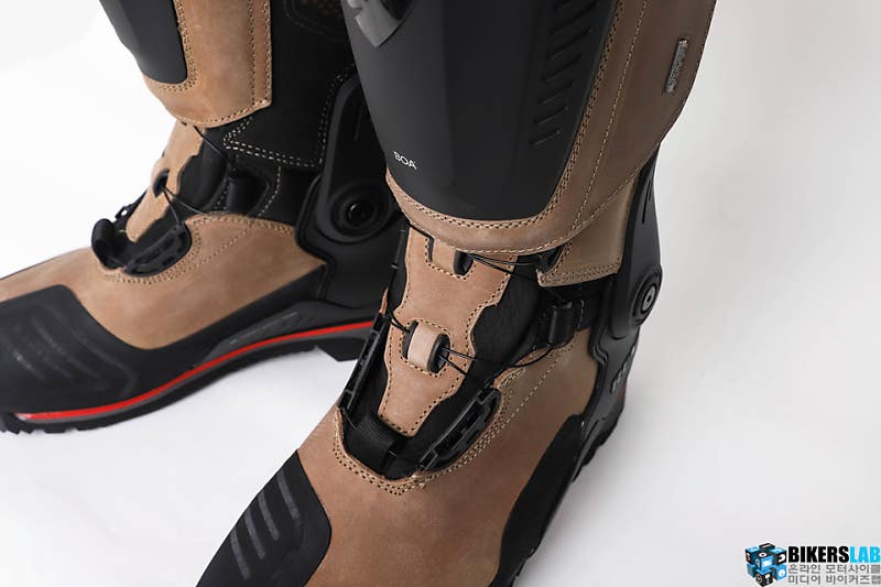 신발은 사이즈를 꼭 맞게 신는 것이 좋다. 특히 라이딩 부츠는 안전과 직결되기에 더욱 중요하다. 기어를 조작하고 브레이크 페달을 밟는 라이딩 부츠가 헐렁하거나 불편하면 사고로 이어질 수도 있기 때문이다. 익스페디션 H2O 부츠는 BOA 피팅 시스템을 적용해 발에 가해지는 압력 조절은 물론이고 부츠를 신고 벗을 때의 편리함도 놓치지 않았다.