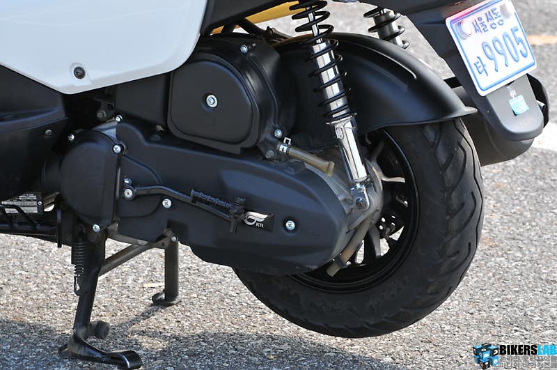 99.8cc 단기통 엔진은 예상했던 만큼의 적정 수준의 힘을 발휘하며, 8,000rpm에서 7마력의 최고출력과 7,000rpm에서 0.7kg*m의 최대토크를 뽑아낸다. 치고 나가는 속도감을 맛볼 수는 없지만 묵묵하게 계기반의 바늘을 올려준다. 도심에서 많이 사용하는 80km를 밑도는 구간까지는 꾸준히 밀어붙인다. 언덕에서의 등판능력은 시계바늘의 분침을 보듯 속도 상승을 확인하는데 시간이 조금 걸린다. 다량의 수화물을 싣고 달리지는 않았지만 그래도 1인 승차의 경우에서는 속도 상승과 달리 무난하게 주파한다.