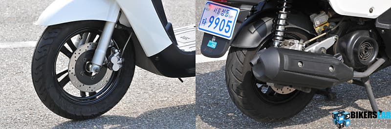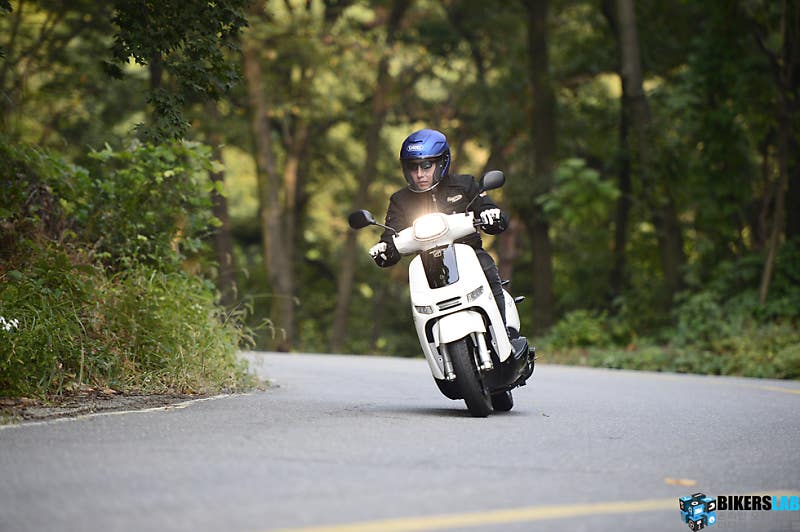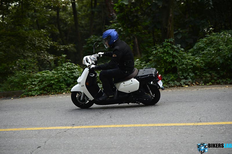 무게는 115kg으로 조종의 부담이 없고, 7L의 연료탱크는 플로어 패널 아래에 위치해 무게 중심을 낮췄다. 게다가 1,280mm의 짧은 휠베이스로 코너에서의 가뿐한 움직임을 확보했다. 적당한 높이에 위치한 핸들바는 무릎과의 여유공간이 충분해 조향이 불편하지 않다.