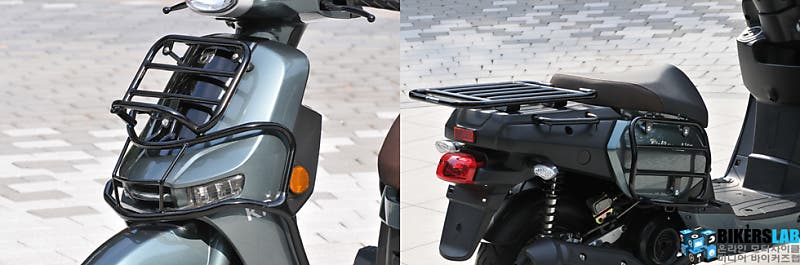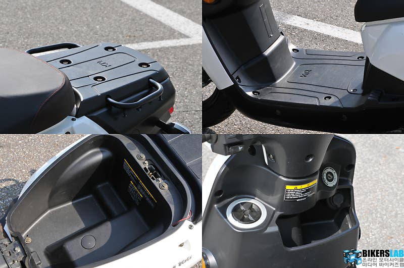 리어 캐리어는 가로 275mm, 세로 305mm의 적재공간을 갖췄고, 플로어 패널은 가로 420mm와 세로 290mm의 넓이로 충분한 공간을 확보했다. 710mm의 시트 높이보다 낮은 높이(675mm)에 자리한 리어 캐리어는 짐을 올리고 내리기가 수월하다. 시트 밑의 수납공간도 12L의 용량으로 개인 소지품 및 하프페이스 헬멧 정도는 실을 수 있다. 레그실드에도 스마트폰과 담배, 지갑 등을 넣을 수 있는 포켓을 마련했고, 바로 옆에 USB포트가 마련돼있어 실용성이 높다.