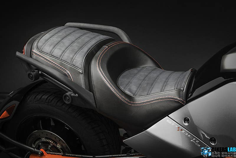 스파이더 시리즈 중 장거리 투어에 최적화 된 RT 시리즈(RT, RT-S, RT-LTD)는 보다 넉넉한 적재공간과 동승자를 편안하게 태울 수 있도록 차체를 구성했다. 투어링 모델답게 기본으로 좌우 사이드 케이스가 제공되며 적재용량은 155L이다. 또한 동승자도 안락한 투어를 즐길 수 있도록 등받이를 갖췄다. 시트높이는 모든 라인업 중 가장 높은 772mm다.