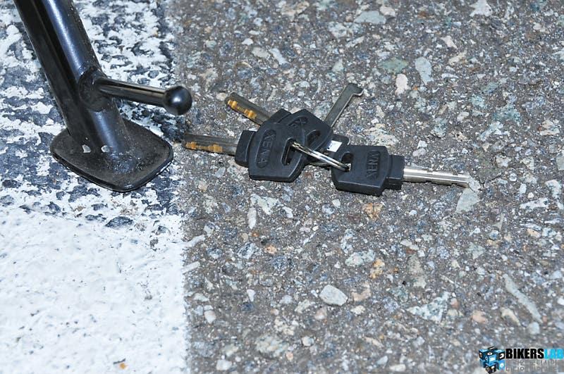 도둑은 아쉽지만 장비를 챙겨 현장을 벗어나기로 마음먹었다. 그런데 그때 사이드 스탠드 옆에 무언가 반짝이는 것이 보였다. 자세히 보니 열쇠 뭉치다. 이 열쇠 뭉치는 디스크락과 체인락, U락의 열쇠임이 분명했다. 이게 왠 횡재인가, 모터사이클 주인도 어지간히 덤벙거리는 것 같았다. 도둑은 잠금장치들을 조심스레 제거했다.