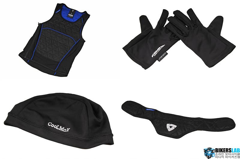이 밖에도 계절용 아이템으로 풀메시 소재로 된 조끼와 물을 적셔 사용할 수 있는 쿨링 베스트 및 쿨링 넥 칼라 등의 제품도 있다. 또한 쿨맥스 소재로 된 이너 캡과 이너 글러브 등을 사용하면, 땀과 열기로 찌든 불쾌한 감각을 조금이나마 덜어준다. 튼튼한 보호장비만큼 중요한 것은, 상황에 따른 적절한 라이딩기어의 선택으로 라이딩에 집중력을 떨어트리지 않게 하여 사고 예방을 줄일 수 있는 것 또한 안전한 라이딩에 중요한 요소다.