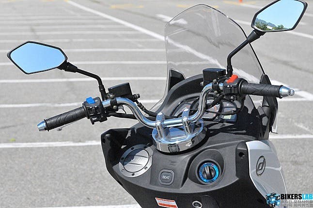 스티져E의 경우, L과 S와 달리 평평한 플로어 패널을 갖추고 있어 상대적으로 발의 위치가 한결 편안하다. 또한 적재 활용성을 위해 플로어 패널의 폭을 30mm 늘렸다. 라이더가 발을 올려 놓는데 있어서는 큰 차이점을 못 느낄 수도 있으나, 실제로 많은 짐을 싣고 다녀야 하는 사용자들에게는 이 3cm가 크게 작용할 수 있다.