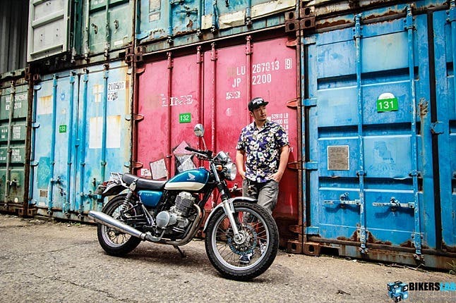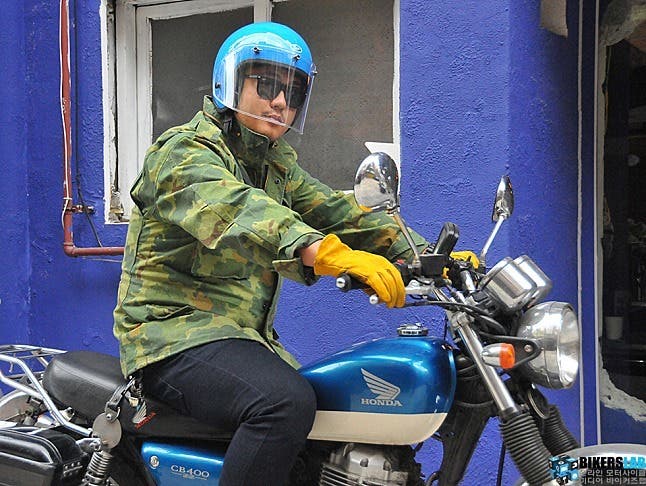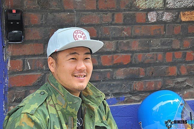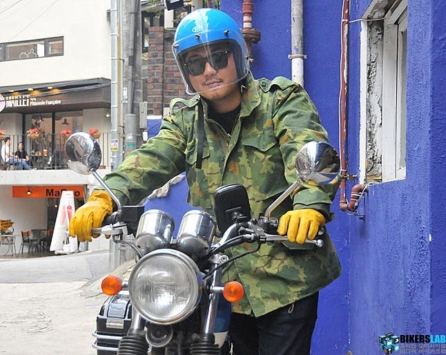 카모플라쥬 패턴의 재킷에 파란색 헬멧 안으로 짙은 선글라스를 착용하고 나타난 그는, 흔히 말하는 요즘의 곱디고운 남자와는 다른 ‘상남자’의 냄새를 풍긴다. 상남자가 풍기는 클래식 스타일과 그가 타고 온 CB400SS 역시 대세와는 사뭇 다르다. 반대로 그는 요즘 대세인 힙합음악을 하는 래퍼다. 래퍼와 모터사이클, 어찌 보면 쉽게 매치 되지 않지만, 유난히 절묘하게 잘 어울리는 이유는 바로 좋아하는 것을 충실히 즐기고 있기 때문이다. 자신의 일에 열정과 최선을 다하지만 매사에 즐겁게 사는 것을 가장 우선시 하고, 모터사이클로 몸과 마음의 환기를 시킨다는 그에게 여유와 자신감이 묻어난다.