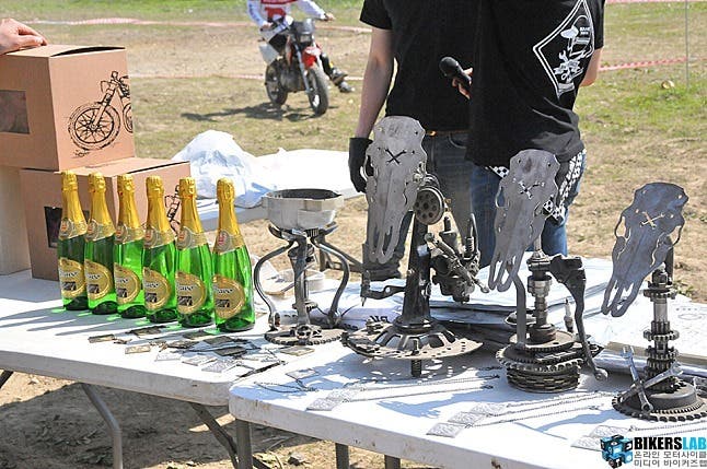 또한 각 클래스에서 수상을 한 참가자들에게 나눠 줄 메달은 카페에서 주문 제작으로 준비해 정성이 돋보였고, 커스텀 개러지에서 만든 트로피는 모터사이클 부품으로 조립해 참신하면서도 독특한 모양이다. 레이스 참가자들의 축하와 더불어 커스텀 및 순정 모터사이클 콘테스트도 진행해 최다 득표를 얻은 사람에게도 영광의 순간을 나눴다.