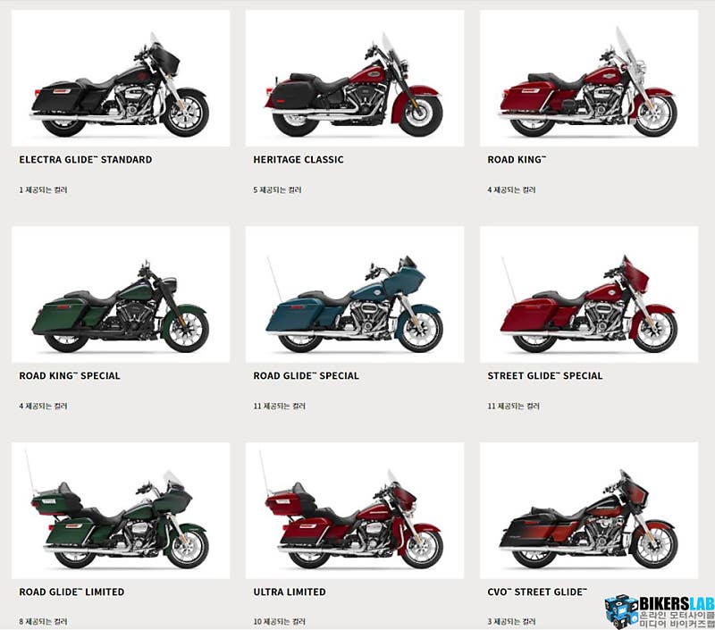 투어링 패밀리는 최근의 트렌드에 발맞춰 배거 삼총사를 강조하는 모양새다. 투어링 패밀리의 넉넉한 차체에 패니어 케이스를 장착해 근육질 스타일을 선보이는 로드 킹 스페셜, 로드 글라이드 스페셜, 스트리트 글라이드 스페셜의 세 가지 모델이 해당한다. 스트리트 글라이드 스페셜 및 로드 글라이드 스페셜은 투톤 페인트 옵션을 선택할 수 있으며, 로드 킹 스페셜과 스트리트 글라이드 스페셜은 데이 메이커 LED 헤드라이트를 탑재했다. 세 가지의 스페셜 모델에는 새로운 형태의 엔진 가드가 기본으로 장착된다. 2021 투어링 라인업은 일렉트라 글라이드 스탠다드, 헤리티지 클래식, 로드 킹, 로드 킹 스페셜, 로드 글라이드 스페셜, 스트리트 글라이드 스페셜, 로드 글라이드 리미티드, 울트라 리미티드 등으로 구성했다.