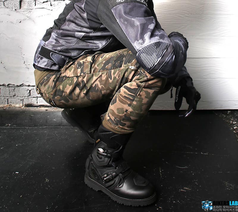 모빈스알 조거 팬츠는 무릎은 물론 엉덩이에도 프로텍터가 자리한다. 무릎 프로텍터의 경우 바지를 벗지 않더라도 외부 지퍼를 통해 프로텍터를 넣고 뺄 수 있다. 허리와 무릎 부근에는 셔링 처리를 했다. 사용한 원단은 신축성이 충분해 쪼그려 앉아도 불편함이 없다. 팬츠 하단은 시보리 처리했다. 부츠 안으로 팬츠 밑단을 넣으면 깔끔하고 슬림한 스타일이 연출된다. 스니커즈 스타일의 라이딩 부츠나 일반 운동화와도 잘 어울린다.