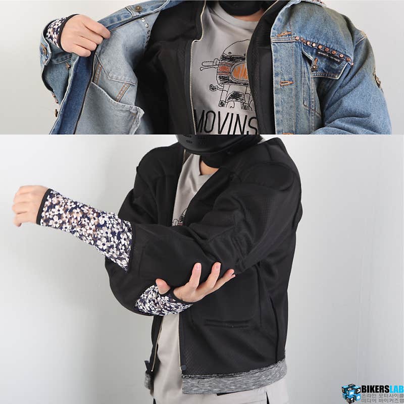 재킷은 안감과 겉감을 분리한 이중 구조다. 안감은 메시 소재를 사용했고 어깨, 팔꿈치, 가슴, 등에 보호대를 넣을 수 있는 포켓이 있다. 손목 부근은 엄지손가락을 걸 수 있는 핸드 워머 구조다. 보일 듯 말 듯 한 꽃무늬는 모빈스알의 정체성을 드러낸다. 꽃무늬가 부담스러울 경우, 소매 안쪽으로 밀어 넣으면 빠져나오지 않기 때문에 누구나 부담을 덜 수 있다. 넥 칼라를 세우면 ‘Tease-Ya!’라는 레터링으로 위트를 발휘하기도 했다. 진취적인 패션 브랜드에서 하는 시도를 모빈스알은 라이딩 재킷에 적용하고 있는 것이다. 핏은 넉넉한 오버 핏이다. 안에 경량 패딩을 착용할 수 있을 정도로 품이 넉넉하다. 때문에 극동계는 아니더라도 영상의 기온이라면 얼마든지 착용 수 있다. 촬영을 진행한 날은 영상 4~5도의 기온으로 제법 쌀쌀했지만 1~2시간의 라이딩은 문제가 없었다.