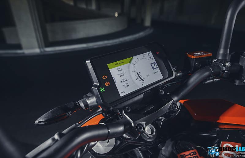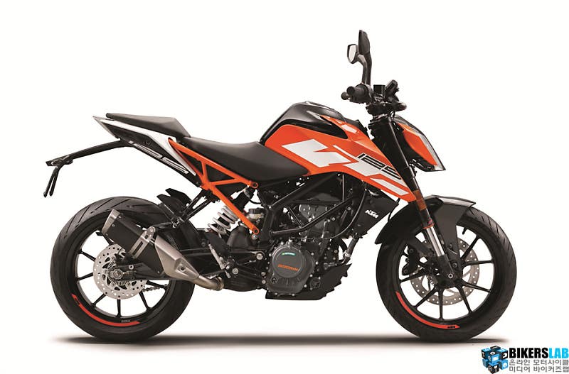 125 듀크는 패밀리룩을 따라 헤드라이트의 형상부터 직선 중심의 강렬한 스타일까지 전체적인 분위기가 닮아있다. 엔트리 기종답지 않게 당당하고 꽉 차보이는 차체가 매력적이다. 124.7cc 수랭식 DOHC 단기통 엔진과 6단 기어를 탑재해 최고 출력 15마력, 최대 토크 1.2kg*m의 성능을 자랑한다. 건조 중량은 139kg이고 시트고는 비교적 높은 830mm. 이 밖에도 43mm WP 도립식 프론트 포크, 300mm 디스크, 바이브레 4피스톤 래디얼 마운트 캘리퍼 등을 탑재했다.
