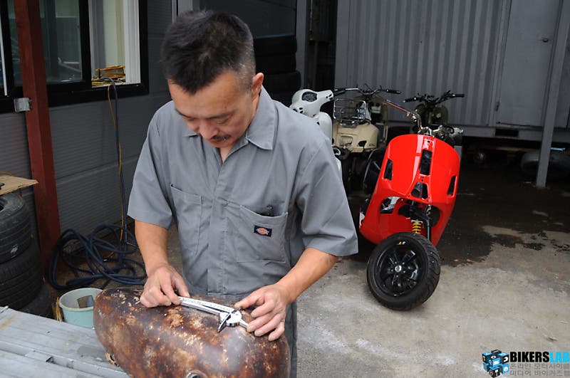 임태양 대표를 만난 곳은 경기도 광주 소재의 작업실이다. 작업실 한편에는 임태양 대표의 스트라이프 로버 미니와 새롭게 작업 중인 로버 미니, 그리고 판금 도색 작업 의뢰를 받은 베스파 등이 자리했다.