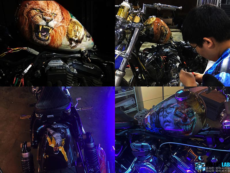 임태양 대표는 가장 기억에 남는 작업으로 아들 임재현 씨의 할리데이비슨 1200 스포스터 커스텀 페인팅을 꼽았다. 2006년식으로 카뷰레터 방식을 적용한 마지막 스포스터에 특별함을 더한 것이다. 해당 작품은 아들 재현 씨의 영어 이름인 ‘MAX’를 컨셉트로 구현했다. 아들이 강하게 살아가길 바라는 아버지의 마음을 담아 연료탱크에 강인한 사자의 모습을 그려 넣었고 나머지 공간에는 아들의 얼굴, 정비사를 표현한 연장과 공구, 함께 복원을 진행했던 코브라 모델, 좋아하는 뮤지션 등 다양한 의미의 그림들로 채워 넣었다.