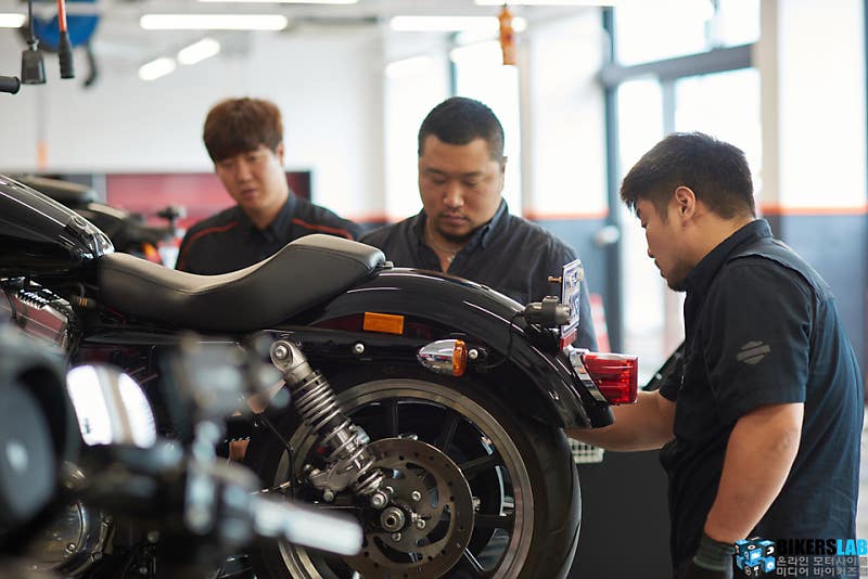 총 3층 규모로 구성된 할리데이비슨 남양주점에서 가장 주목할 부분은 다름 아닌 ‘정비 서비스’이다. 실제 남양주점 1층에 위치한 정비 서비스는 국내에서 손꼽히는 큰 규모를 자랑하며, 특히 할리데이비슨 라이더들에게 높은 인지도를 가진 김동노 점장이 지점 총괄로 부임하면서 그 기대감을 더욱 높였다. 김동노 점장은 대한민국에 단 2명뿐인 할리데이비슨 정비 마스터 테크니션 자격을 보유하고 있다.