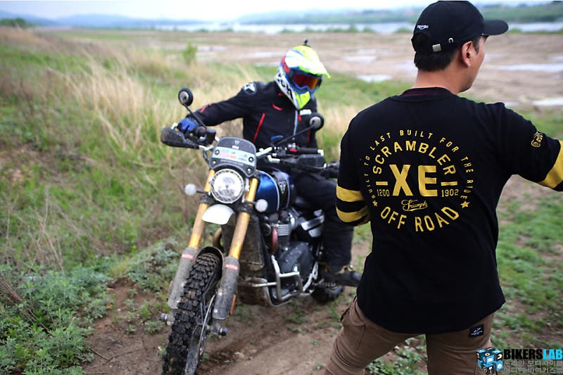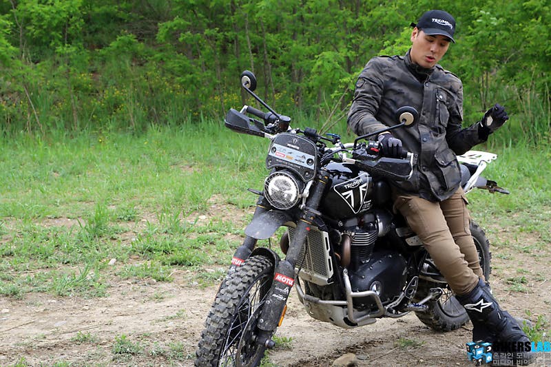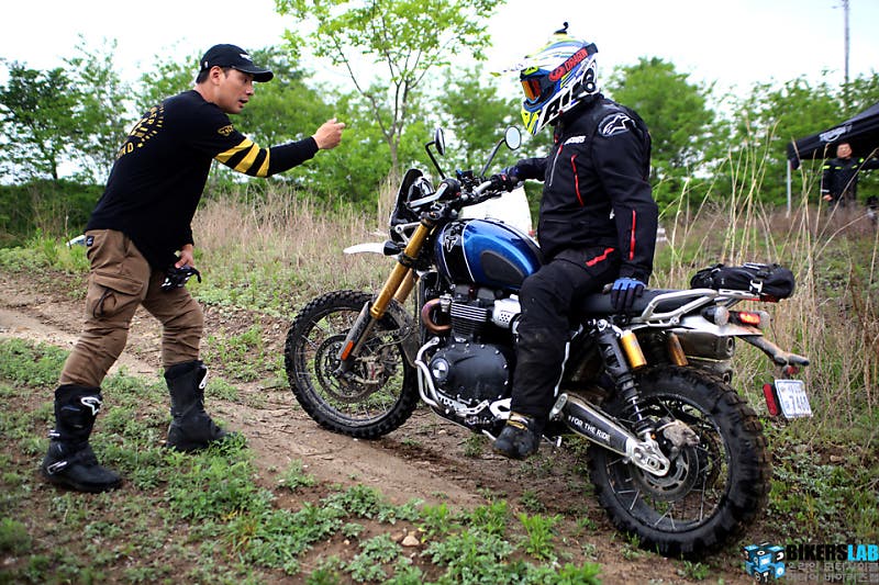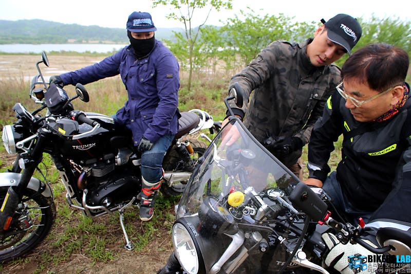 트라이엄프는 온로드와 오프로드를 가리지 않고 라이딩 스쿨을 진행하고 있다. 지난 10일 여주 이포보 일대에서 열린 트라이엄프 라이딩 스쿨에서 그 궁금증을 일부분 해소할 수 있었다. 오프로드 라이딩 스쿨은 어드벤처 스튜디오의 박지훈 대표가 인스트럭터로 교육을 진행하고 있다. 박지훈 인스트럭터는 30년 이상의 모터사이클 경력과 더불어 해외 인스트럭터 교육 과정을 이수한 이력도 갖고 있는 모터사이클 전문 강사다. 특히 입문자도 이해하기 쉽게 눈높이 교육을 실시해 라이딩 스쿨 인스트럭터로서 부족함이 없다.