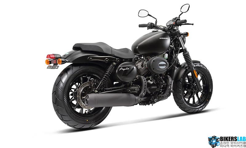 미라쥬 시리즈에서 아퀼라로 넘어오며 생긴 변화는 젊어진 디자인이다. 프레임의 크기를 줄이고 차체의 부피를 응축하며 트레일을 짧게 설정해 스포티한 주행 성능을 확보했다. 리어 펜더도 말끔하게 정리해 깔끔해진 인상이다. 색상은 유광 블랙에서 무광 블랙으로 변경했다. 프론트와 리어 모두 싱글 디스크 브레이크 방식을 채택했으며 ABS 역시 탑재했다. 12v USB단자를 마련해 편의성을 확보했고 2인승 시트를 장착해 탠덤 라이딩도 가능하다. 계기반은 아날로그와 디지털을 혼합한 방식으로 회전계는 아날로그로, 속도계는 디지털로 표시한다. 가격은 499만원이다.