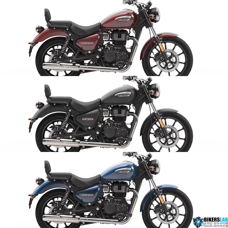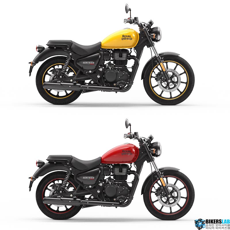 메테오 350은 옵션의 차이를 둔 3개의 트림으로 구성, 총 7가지 색상으로 출시했다. 기본형인 메테오350 파이어볼(Fireball) 트림은, 옐로우와 레드 2가지 색상이며 가격은 469만원이다.