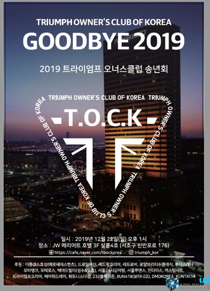 트라이엄프 코리아가 지난 23일(일) JW 메리어트 호텔 서울에서 진행된 트라이엄프 모터사이클 오너들의 모임인 ‘트라이엄프 오너스 클럽’의 송년회에 경품과 기념품을 지원했다.