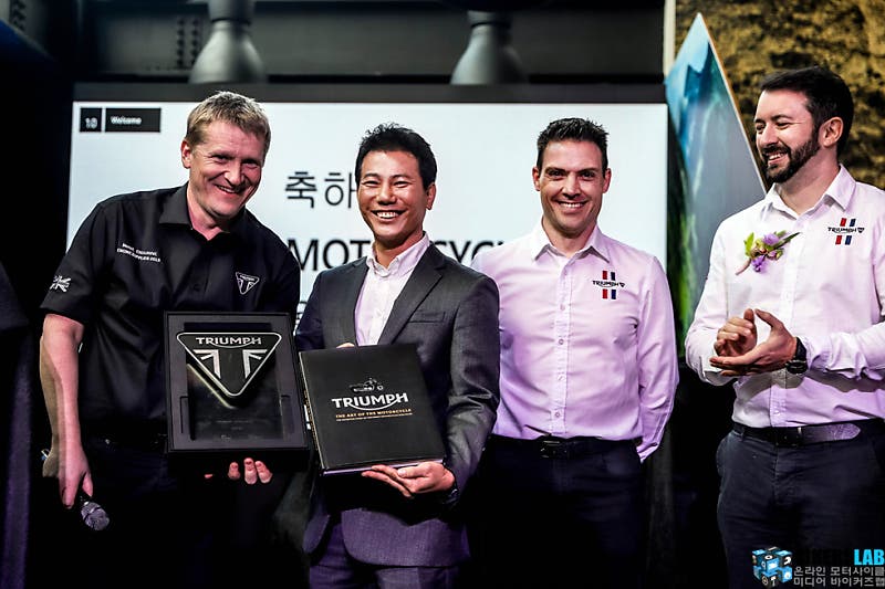 이후 국인섭 트라이엄프 코리아 대표는 환영인사를 통해 트라이엄프 코리아의 행보를 소개했고 영국 트라이엄프 본사 CCO(최고 홍보 책임자)인 폴 스트라우트도 축하 인사와 더불어 성공을 기원했다. 두 대표 간의 라이선스 전달도 이뤄졌다. 이어서 나윤석 및 신동헌 칼럼니스트가 트라이엄프가 갖고 있는 성격과 특성, 기종에 대한 설명 등을 이해하기 쉽게 토크쇼 형식으로 풀어내 브랜드 이해를 도왔다.
