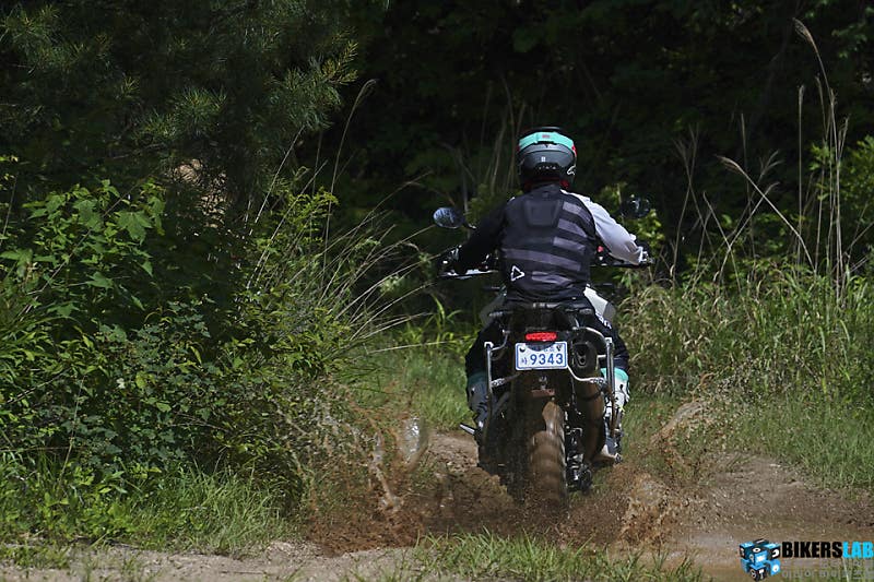 마무리는 오프로드 체험 주행이다. 원하는 참가자에 한해 숙소 인근 임도로 향했다. 약 한 시간 반 정도로 구성한 코스다. 전날까지 비가 왔기 때문에 군데군데 물웅덩이도 있었지만 대체적으로 평이한 비단 임도였다. 이틀간의 교육을 실전에서 적용해 볼 수 있는 기회다. 행렬의 중간마다 스텝을 배치해 혹시 모를 사고에 대비했다. 주행 중 쉬는 시간도 충분히 마련해 체력적인 부담도 고려했다. 날씨는 맑았고 녹음은 푸르렀다. 라이더들의 표정도 밝았다.