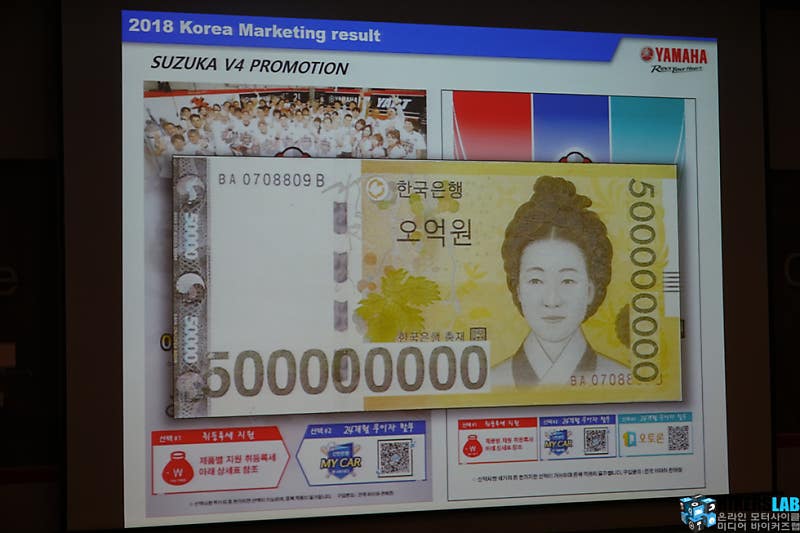 한국모터트레이딩은 지난 해에도 다양한 대외활동과 높은 판매량으로 성장을 이뤄냈다. 데상트와 컬래버레이션, 안전한 라이딩을 위한 YRA(Yamaha Riding Academy), 라이더들의 축제인 야마하 페스티벌 등으로 라이더와의 교감은 물론 양질의 시장발전을 위한 다채로운 프로그램 및 행사를 개최했다. 또한 파격적인 프로모션으로 역대 프로모션 중 최다수익을 창출하기도 했다.