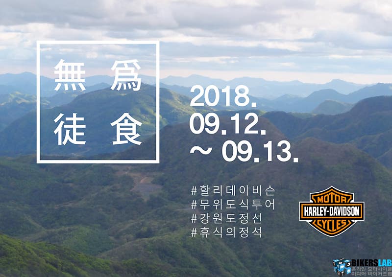 할리데이비슨 코리아가 912~13일 양일간 강원도 정선군에 위치한 파크로쉬 리조트에서 진행하는 무위도식(無爲徒食)’ 투어의 참가자를 모집한다고 밝혔다.