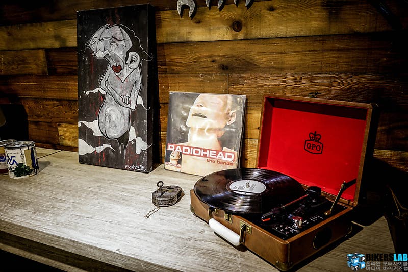부스의 콘셉트는 빈티지 스타일의 개러지. 지금의 모터사이클 트렌드 중 하나는 바로 ‘복고’다. 최신기술로 집약된 고성능의 모터사이클도 스포츠라는 측면에서 라이더를 반기지만, 분위기와 디자인 그리고 감성을 추구하는 레트로 스타일이 라이더 사이에서 각광받고 있다. 규격화된 사회에서 자신을 드러낼 기회가 충분치 않기에, 모터사이클을 통해 본인의 라이프스타일을 드러내고자 함이 바로 요즘의 모터사이클 문화다.
