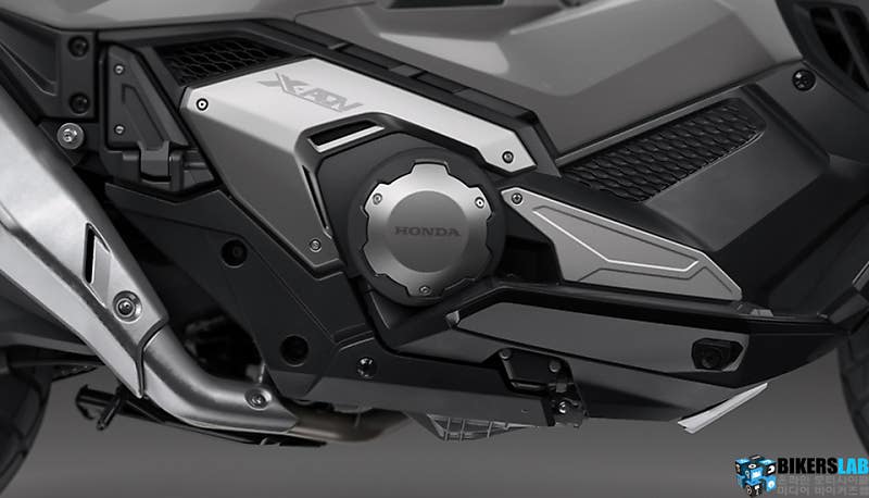 반면 구동 방식은 체인 드라이브를 채택했다. 또한 테이퍼드 타입의 핸들바, 도립식 프론트 포크, 튜브리스 스포크 와이어 휠, 조절식 윈드 스크린 등 어드벤처 모터사이클의 핵심 요소들까지 갖춘 점이 X-ADV의 특징이다.