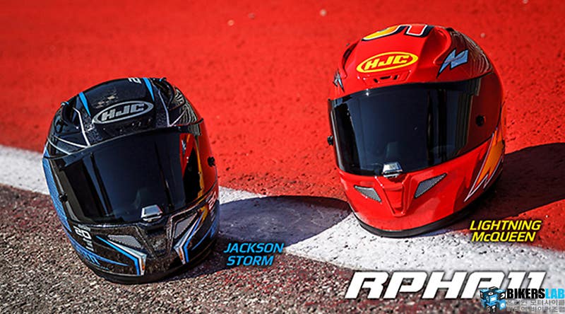 베이스 헬멧은 자사의 플래그십 풀페이스 헬멧인 알파11(RPHA 11)이다. 라이트닝 맥퀸 버전은 라이트닝 맥퀸을 상징하는 레드 컬러를 바탕으로 라이트닝 데칼과 백넘버 ‘95’ 등으로, 마치 실제 선수용 헬멧인듯한 분위기를 완성했다. 잭슨 스톰 버전은 블랙 바탕에 블루 컬러로 포인트를 부여해 영화 속 차량을 연상케 했다.