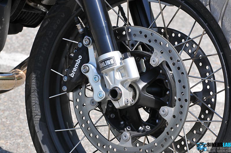올린즈 서스펜션을 장착한 알나인티 스크램블러의 하체는 견고해졌다. 서스펜션의 주된 목적인 노면 추종성을 높이는데 있어 올린즈의 역량이 톡톡히 드러났다. 순정 상태의 알나인티 스크램블러의 서스펜션도 나무랄 수준은 아니다. 도심주행과 비포장도로를 모두 염두에 둔 포용력 넓은 세팅으로, 적당한 탄력을 유지해 장르 특성다운 털털한 라이딩 스타일에 어울렸다. 감당할 만큼의 피칭 모션과 댐퍼의 한계를 넘어온 충격은, 약간은 거친 맛으로 즐기는 스크램블러 장르를 고려하면 자연스레 납득할 수 있는 수준의 설정이다.