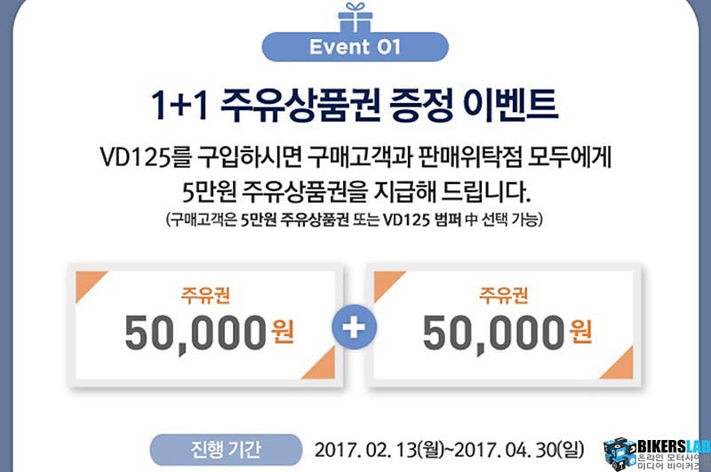 최근에 출시한 VD125는 승용과 상용을 아우르는 멀티 유틸리티의 콘셉트로, 등하교는 물론 필요에 따라 짐을 싣고 탠덤을 하기에도 충분하다. 디자인도 스포티하고 세련된 스타일로 구현해 도시적인 이미지를 갖고 있다. 실제 운행시와 근접한 테스트인 배출가스 연비 기준으로 41.6km/L의 연비도 실현했다. 이 밖에도 낮은 시트높이와 가벼운 무게 등으로 남녀노소 누구나 쉽게 조작할 수 있다. 판매가격은 239만원이며, 현재 대림자동차는 4 30일까지 VD125를 구매하는 고객에게 5만원의 주유상품권을 지급하는 프로모션을 진행 중이다.