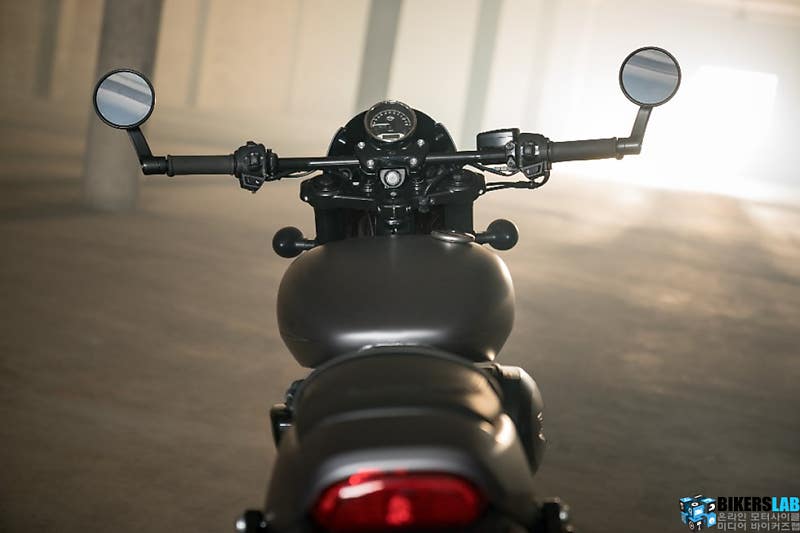 디자인도 확연히 차이가 난다. 스트리트750과 유사한 라인을 갖추고 있지만 세심하게 재구성한 마감처리로 전혀 다른 분위기를 완성했다. 시트에는 펀칭 타입의 디자인을 적용했고, 짤막한 프론트 카울도 각을 날렵하게 다듬었다. 이 밖에도 새롭게 적용한 휠 디자인과 커다랗게 자리한 에어 클리너 박스, 드래그 스타일의 핸들바와 바–엔드 타입의 사이드미러를 적용하는 등 당당한 라이딩 포지션에 부합하는 스타일을 구현했다. 연료탱크 용량은 13.1L로 스트리트750과 동일하다.