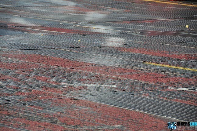도로 상황 역시 안전하지 못하다. 해빙기 라이딩 시 유의해야 할 사항 중 하나는 싱크홀이다. 싱크홀은 다양한 원인으로 발생하지만 해빙기의 경우, 수분을 내포한 아스팔트가 온도변화로 수축과 팽창을 하면서 공간과 균열이 생기게 되고, 이에 따라 지반이 약한 부분은 무너져 내려 싱크홀을 만든다. 싱크홀은 예고 없이 찾아오기 때문에 항상 조심해야 하지만 이렇다 할 대책 방법은 없다. 최대한 노면의 상황을 시시각각 살피며, 균열의 조짐이 보이거나 움푹 패인 곳 등은 가급적 피하거나 서행으로 지나간다. 공사현장 주변 또한 예의주시해야 한다.
