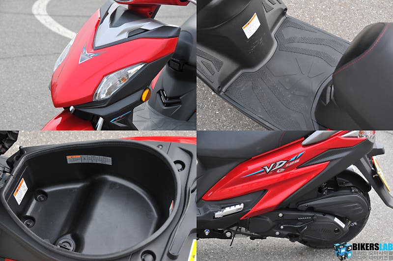 시트높이는 730mm로 경쟁기종과 비교해도 낮은 설정이며, 남녀노소 누구나 부담 없이 탈 수 있도록 했다. 플로어패널은 410mm의 폭으로 승차시의 편안함은 물론 실용성도 확보했고, 한국인의 체형에 적합한 라이딩포지션을 구현했다. 연료탱크용량은 6L이며 차체 무게는 112kg이다. 휠베이스 역시 1,230mm로 좁은 골목길에서도 원활한 조작이 가능하게 했다. 프론트의 이너박스는 잠금장치를 마련해 소지품을 안전하게 보관할 수 있으며, 시트 밑의 러기지 박스의 용량은 12.5L.