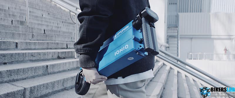 또한 아이오닉 스쿠터는 한 손으로 들고 다닐 수 있을 정도의 경량화를 이뤘다. 앞 바퀴를 중심으로 발판 부분과 스티어링 축을 접을 수 있으며, 양쪽 핸들바는 가운데로 모아 손잡이로 사용할 수 있다. 디지털 계기반은 속도와 배터리 잔량을 확인할 수 있고, 프론트와 리어에 라이트도 장착했다.