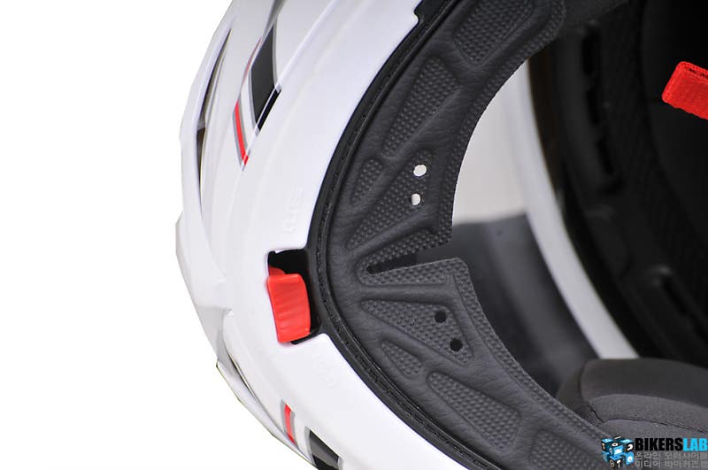 또한 이너바이저를 탑재한 에고는, 주행 상황에 따라 헬멧 좌측의 레버를 내리고 올리는 간단한 조작만으로 최적의 시야를 확보할 수 있다. 바이저를 탈부착하기 위해 일련의 번거로운 과정을 거쳐야만 했던 기존 풀페이스 헬멧과 달리, 에고는 바이저를 화살표에 맞춘 후 레버를 안쪽으로 당기기만 해도 쉽게 분리가 가능하다.