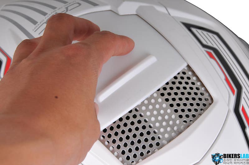 에고는 헬멧 상단에 에어루프 시스템을 채용했다. 에어루프의 단면을 살펴보면 마치 자동차의 선루프처럼 ‘뚫려’있다. 플립 커버로 여닫을 수 있는 이 에어루프는 그 어떤 에어 덕트보다 효과적으로 통기성을 확보해 두피의 열을 효과적으로 낮출 수 있다. 게다가 이 에어루프는 글러브를 낀 상태에서도 가볍게 여닫을 수 있어 편리하고 실용적이다.