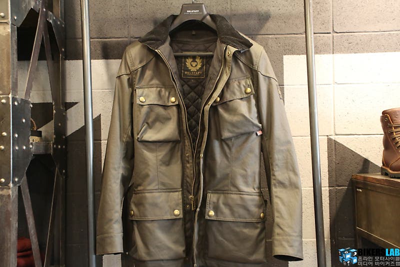 벨스타프는 오랜 역사를 자랑하는 영국의 의류 브랜드다. 지금은 라이딩 기어보다 일반 어패럴의 비중이 더 크지만, 벨스타프의 시작은 모터사이클 라이딩 재킷을 만드는 것에서부터다. 영국 맨(Man)섬 TT(Tourist Trophy) 레이스는 1907년에 첫 대회가 열렸다. 당시 비포장 노면에서 발생되는 흙 먼지는 참가자들에게 골칫거리였다. 결국 먼지가 묻는 것을 방지하기 위해 진행 요원은 산성 용액을 참가자들의 라이딩 재킷에 뿌려줬고 용액을 바른 재킷은 번들번들하게 광택이 났다. 이것이 바로 벨스타프가 왁스 코튼 재킷을 제작하게 된 유래다.