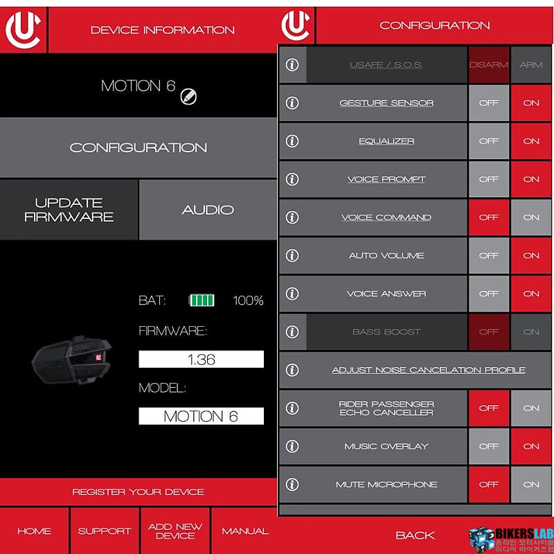 이외에도 모션6는 뮤직 오버레이 기능을 지원, 대화를 나누면서 내비게이션 음성 안내와 음악도 함께 들을 수 있고, 뮤직 쉐어링을 지원해 하나의 스마트폰을 두 대의 헤드셋에 연결할 수도 있다. 제조사인 유클리어는 미군의 군사 통신 기술을 블루투스 헤드셋에 접목시킨 전문 제조업체다. 신뢰성을 확인할 수 있는 대목이다. 또한 공식 수입사를 통해 유통되고 있어 2년 간의 무상 보증 서비스도 받을 수 있는 것 역시 긍정적인 요소다.