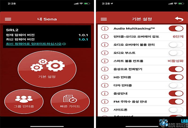 상세 설정은 애플리케이션을 이용해 간편하게 변경할 수 있다. 물론 기기 자체적으로도 설정을 변경할 수 있지만 버튼이 간소화돼 있는 만큼 애플리케이션을 사용하는 것이 보다 편리하다. 애플리케이션을 사용하려면 SRL2 펌웨어를 최신으로 업그레이드해야 하며, 스마트폰과 페어링 해야 한다.  세나 공식 홈페이지에 게재돼 있는 SRL2의 사용자 설명서(https://www.senabluetooth.co.kr/static/docs/ug/UserGuide_SRL2_v1.0.0_kr_JK24.pdf)를 참고하는 것을 권장한다.