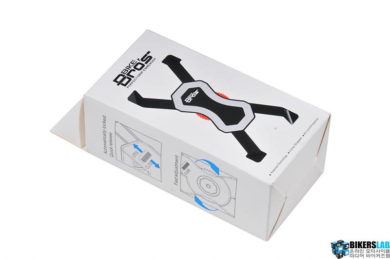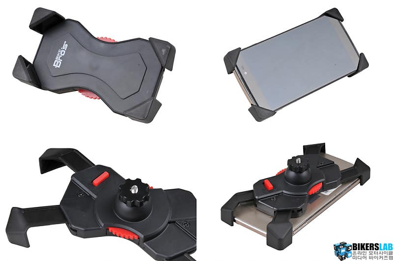 바이크브로스의 PB03-E는 나머지 세 개의 제품 중에서 가장 간편하고 합리적이다. 부담 없는 가격으로 누구나 쉽게 선택할 수 있는 제품이면서도 거치대 본연의 기능에 충실했다. 구성도 간결하며, 핸들바 마운트와 사이드미러 마운트 타입의 두 가지로 장착할 수 있다. 장착방법도 간단하다. 핸들바에 장착할 경우, 라운드 타입의 마운트를 사용해 동봉된 고무 밴드와 함께 핸들바의 굵기에 따라 알맞게 조절하면 된다.
