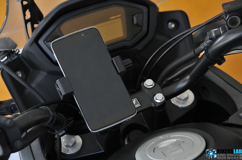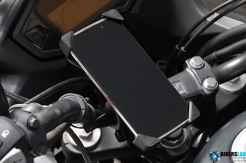 또 다른 장점은 깔끔함이다. 충전기와 거치대를 일체화한 것도 있지만, 핸들바의 중앙(핸들 포스트)에 장착할 수 있다. 모터사이클의 종류와 상관 없이 거의 모든 기종에 장착할 수 있는 별도의 브라켓(별도구매)을 활용하면, 정 중앙에 깔끔하게 부착된다. 핸들바의 한쪽 측면에 장착할 경우, 외관상 거추장스러운 것은 물론 라이더의 시야가 분산되기 마련인데, 가운데에 장착하면 정면 시야에서 벗어나지 않고 스마트폰을 확인할 수 있어 시야반경이 확실히 줄어든다.
