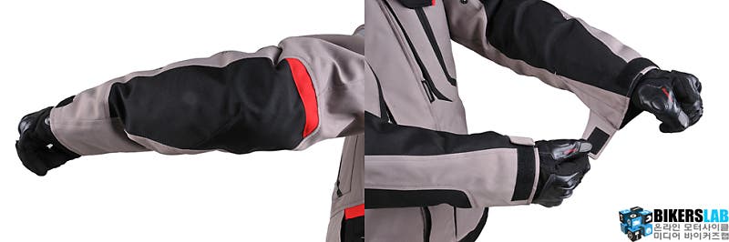 어깨와 팔꿈치에는 CE인증 보호대가 마련됐으며, 등에는 CE 레벨2 보호대를 옵션으로 장착할 수 있다. 팔꿈치 부위는 전도 시 안전과 재킷 손상을 방지하기 위해 보다 질긴 소재를 덧댔다. 재킷 후면에는 공기 통로를 마련해 공기가 원활하게 빠져나가도록 했다. 안감은 폴리우레탄 섬유를 코팅해 신축성과 오염 방지에 강하다. 때문에 착용감이 우수하고, 신체의 땀과 이물질 등에도 쉽게 오염되지 않아 관리가 용이하다.