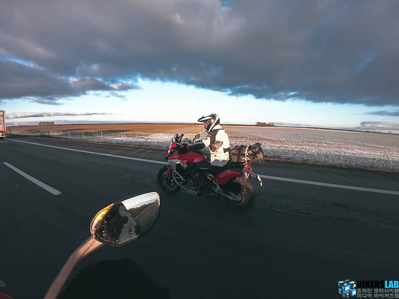 두 라이더는 장시간 주행으로 집중력이 떨어진 상황에서도 어댑티브 크루즈 컨트롤, 사각지대 경고 기능의 도움을 받아 안전하게 주행했다. 눈이 덮인 이탈리아의 고속도로를 약 650km 정도 달린 후에야 오스트리아를 거쳐 독일에 도착했다. 눈보라가 몰아치는 날씨에도 라이딩을 멈추지 않았으나, 아무 문제 없이 스웨덴에 도착할 수 있었다.