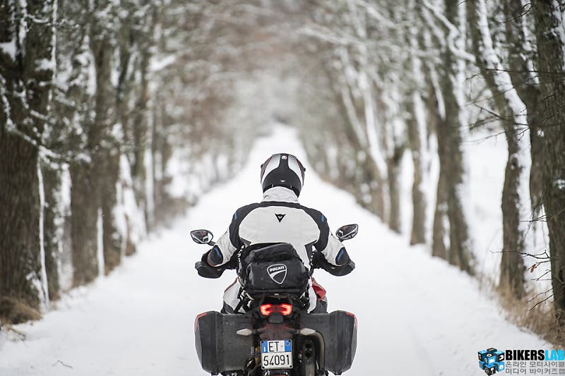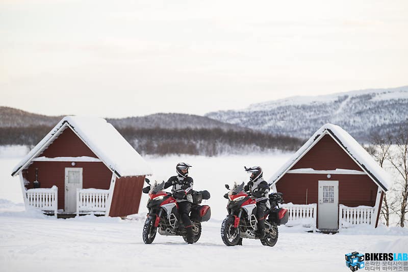 2021년 1월 29일. 두 명의 라이더는 두카티 본부에서 출발해 북쪽을 향해 달렸다. 매서운 추위와 눈 덮인 도로를 헤치며 하루에 적게는 수백에서 많게는 천 킬로미터 이상에 달하는 거리를 이동했다. 멀티스트라다 V4는 편안한 라이딩 포지션을 제공했고, 열선 그립 및 시트를 탑재해 체온 유지를 도왔다. 윈드 스크린은 우수한 방풍 성능을 갖춰 편안한 라이딩이 가능했다. 멀티스트라다 V4는 현저하게 낮아진 기온에도 불구하고 기능 장애가 발생하지 않았다.