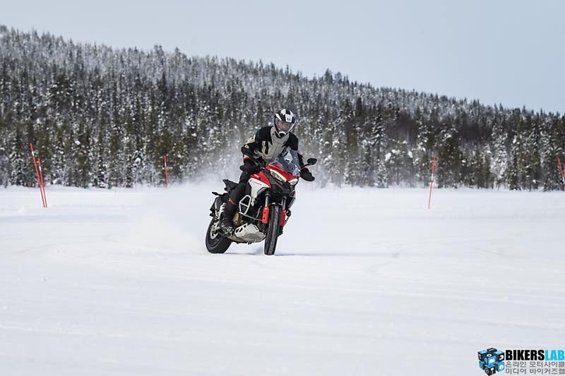 북극 한계선에 도달하기까지는 서스펜션의 도움이 컸다. 스카이훅 서스펜션은 노면에 따라 전자식으로 댐핑을 조절해 라이더의 피로를 줄였다. 또한 멀티스트라다 V4는 네 가지 라이딩 모드(스포츠, 투어링, 어반, 엔듀로)를 통해 서스펜션 세팅은 물론 엔진 출력까지 조절할 수 있어 다양한 노면 주파 및 장거리 라이딩에 특화됐다.