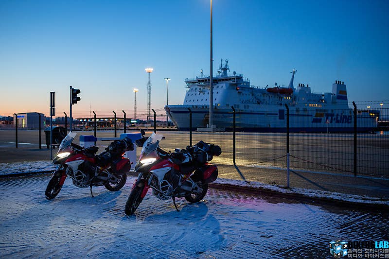 북해 인근에 위치한 록스톡 항구에서 배를 타고 스웨덴에 도착했다. 기후는 시시때때로 변했고, 노면의 상태는 갈수록 악화됐다. 두 라이더는 스웨덴의 수도 스톡홀름에 위치한 두카티 데스모 센터에 방문했다. 이곳에서 타이어를 피렐리 스콜피온 랠리로 교체했고, 스터드를 장착해 눈길 주행에 대비했다. 스웨덴의 얼어붙은 노면에서 트랙션 컨트롤 시스템과 타이어의 조합은 안정적인 그립력을 발휘했다.