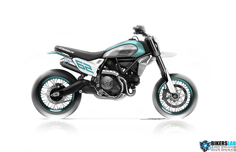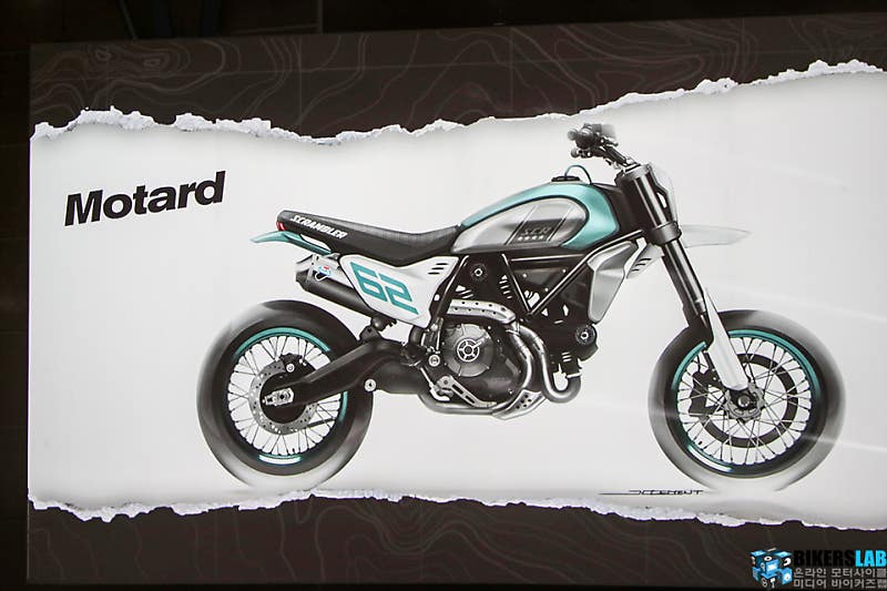 동시에 공개한 또 하나의 기종은 스크램블러 모타드라는 명칭으로 공개했다. 연료탱크에는 스크램블러를 뜻하는SCR이라는 이니셜이 적혀 있다. 데저트X와는 달리 기존의 둥근 연료탱크 형상을 갖고 있고 커다란 프론트 펜더와 업마운트 머플러를 장착했다. 색상은 휠 트림과 연료탱크에 민트 색상 계열을 사용했다.