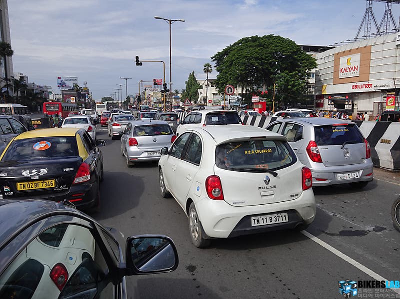 이번에 방문한 곳은 2013년에 가동을 시작한 로얄엔필드의 두 번째 공장인 오라가담(Oragadam)공장이다. 첸나이 공항에서 약 40km 정도 떨어진 곳에 위치해 있어, 한 시간 가량 차를 타고 이동해 공장에 도착했다. 공장으로 가는 길은 인도에서는 고속도로에 해당하는 4차선 이상의 도로였지만 전반적으로 정돈되지 않고 혼란스러운 모습이다. 혼잡한 도로를 달려 공장에 들어서서 였을까. 공장의 첫 인상은 밖과는 사뭇 다르다. 울타리 밖 도로 상황과 맞물리며 상반된 환경이다. 깔끔하고 현대적이었고, 공장 건물은 물론이며 단지 내 조경부터 정돈 상태까지 나무랄 곳 없이 잘 정비돼 있다.
